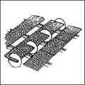 Layers of cross-directional strands are pressed under intense heat and pressure to form a rigid, dense structural panel of oriented strand board (OSB). Presses are primarily multiple opening allowing 8 to 16 master panels to be pressed in one operation for increased efficiency. Since 1997, continuous presses producing a ribbon of OSB commenced operation on certain sites. |
