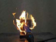 | In test OSB-02 A piece of OSB was dipped in gasoline 4 times and the same piece was subjected to blowtorch flame (1300oC). The first round of the gasoline test was made with a piece of same specs as a comparison. In the following rounds, it was seen that after gasoline burns and evaporates, the fire ceases (in 2,5 -3 sec). OSB piece does not catch fire. It does not get deformed. After the 4th round with gasoline, we have applied blowtorch flame for 4,5 minutes. The piece has been carbonized, never caught flame and |