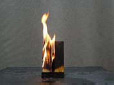 | A piece of pine wood, treated with Fire-O, after being subjected to blowtorch flame (1300oC) is compared to a natural one. The untreated piece burns to ashes in 150 seconds however the treated piece shows minor deformation and the back side preserves its natural color and form. |