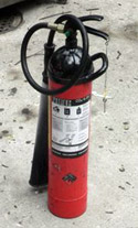 A fire extinguisher rated for class A, B, and C fires.One method would be dropping or spraying a chemical retardant, such as slurry, onto the fire. This is usually done by plane, and the pumps required to handle a chemical retardant would not often be available to ground fire crews - this makes it's use against class-B fires limited. A carbon dioxide fire extinguisher may be used on small class-B fires, though some fire extinguishers are not designed to fight against all classes of fire.